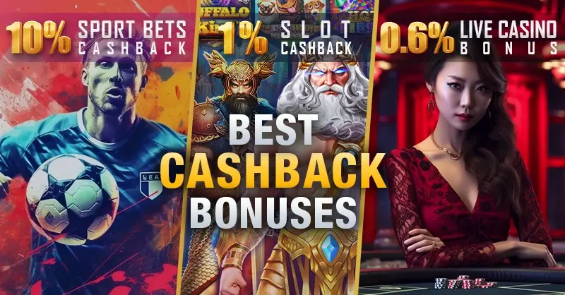 The following types of Cashbacks are offered: Casino Cashback, Slot Cashback, and Sport Cashback.